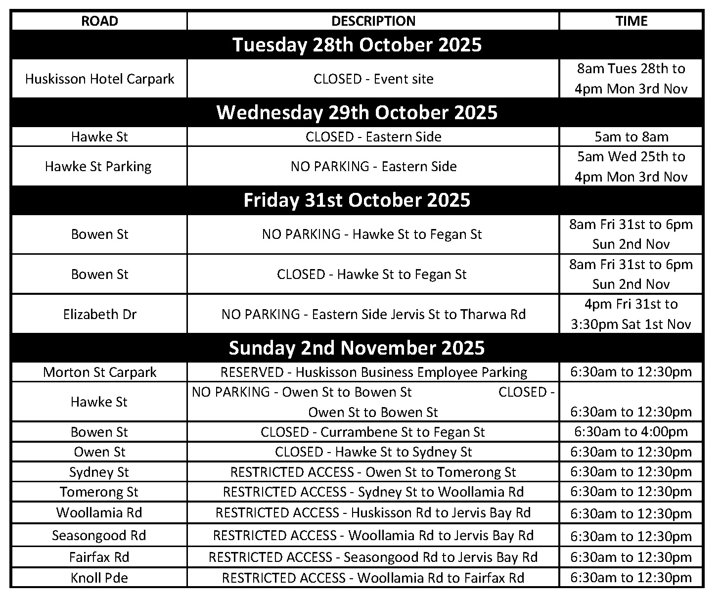 View Road Closures Notification